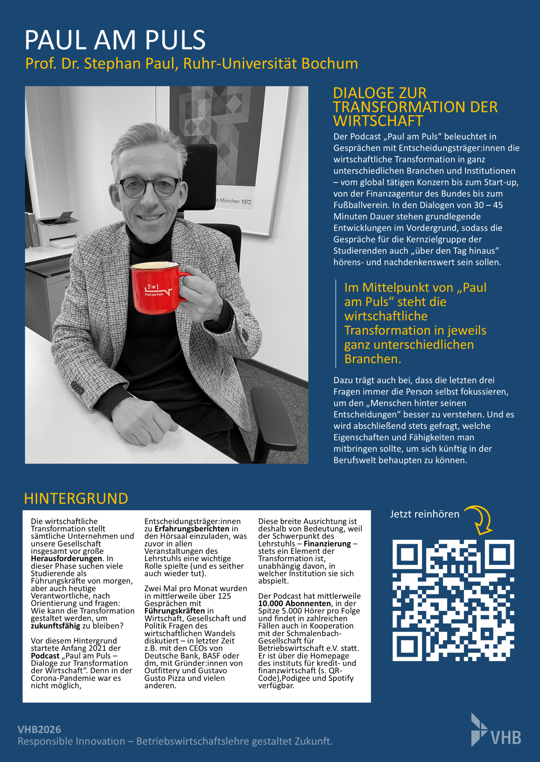 ist unser Podcast über die Wirtschaft von morgen. Zweimal im Monat spricht Prof. Dr. Stephan Paul mit Entscheidungsträgern aus Wirtschaft, Gesellschaft und Politik über Herausforderungen, Chancen und Perspektiven wirtschaftlicher Wandlungsprozesse. Hier reinhören!
